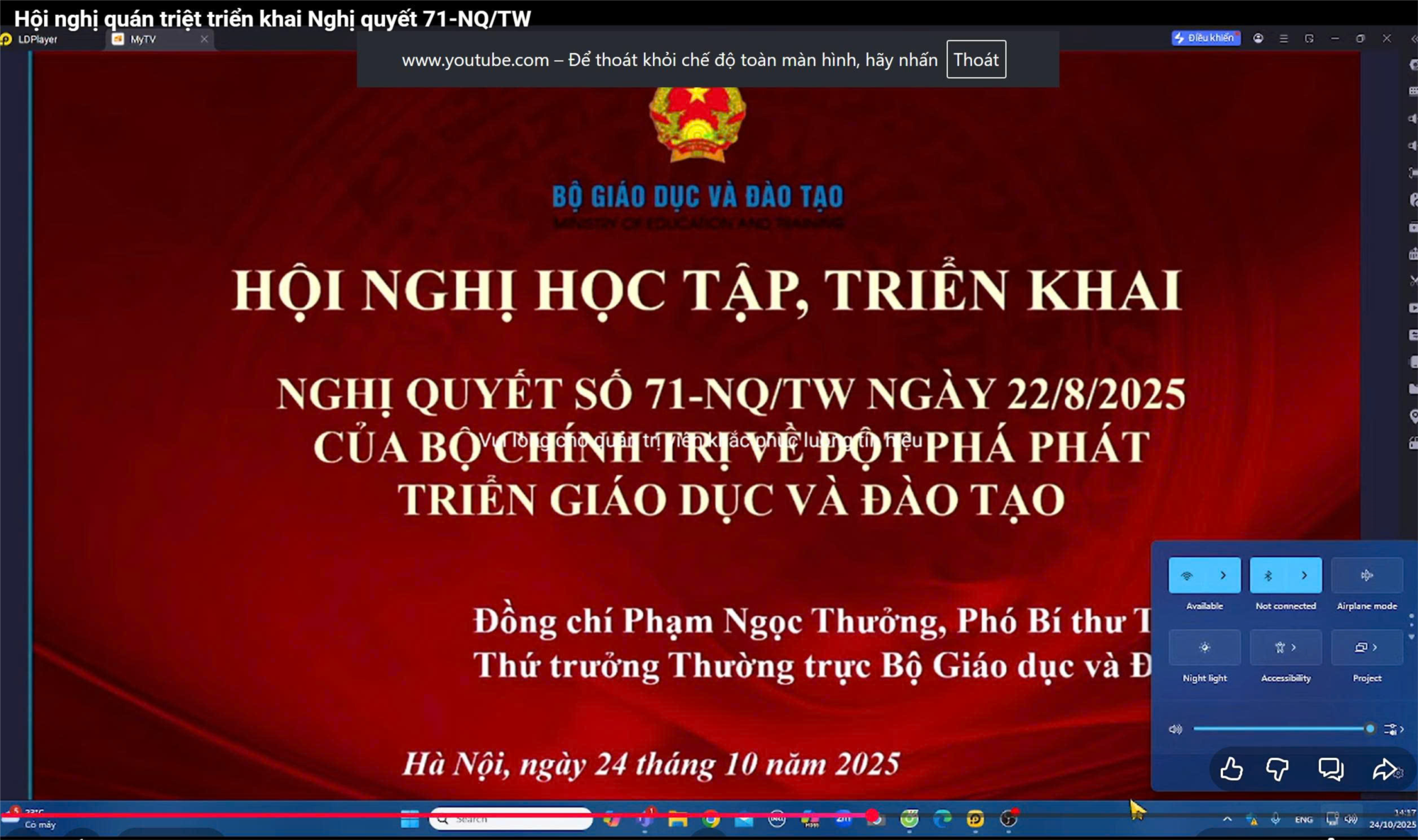 Chiều ngày 24/10/2025, Ban Giám hiệu, các Tổ trưởng chuyên môn và Bí thư Chi đoàn Trường Tiểu học Hải Thành tham dự Hội nghị học tập, triển khai Nghị quyết số 71-NQ/TW ngày 22/8/2025 của Bộ Chính trị về đột phá phát triển giáo dục và đào tạo, do Bộ Giáo dục và Đào tạo tổ chức theo hình thức trực tuyến toàn quốc.