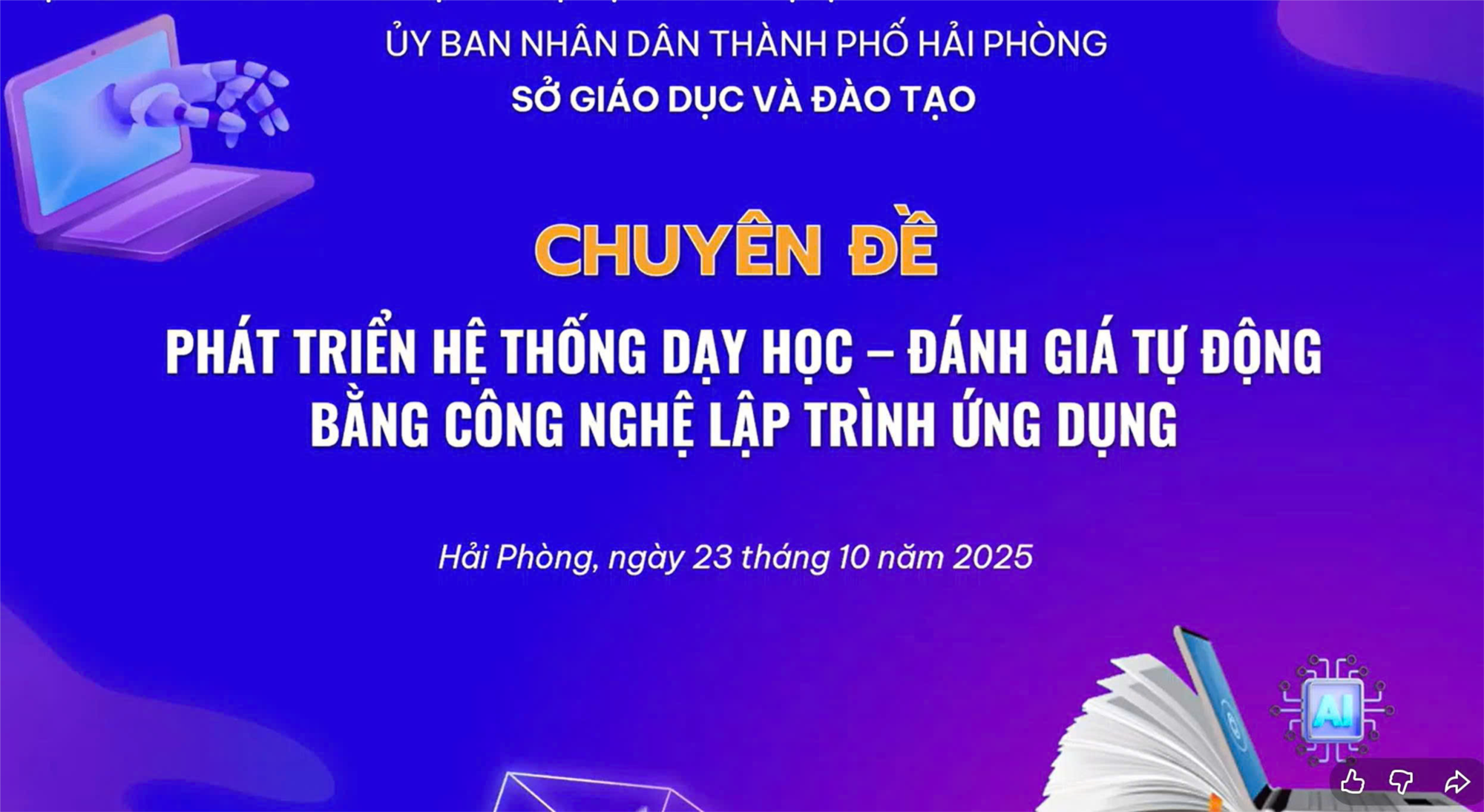 Sáng ngày 23/10/2025, cán bộ, giáo viên Trường Tiểu học Hải Thành tham dự chuyên đề trực tuyến “Phát triển hệ thống dạy học – đánh giá tự động bằng công nghệ lập trình ứng dụng” do Sở Giáo dục và Đào tạo thành phố Hải Phòng tổ chức với tiết dạy minh họa do cô giáo Lưu Thị Ánh Lâm – giáo viên trường Tiểu học Tô Hiệu thực hiện