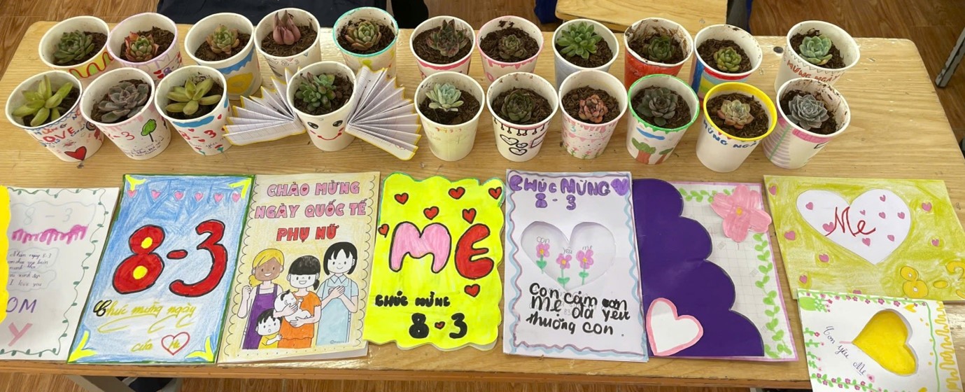 Đây không chỉ là món quà tinh thần ý nghĩa mà còn thể hiện lòng biết ơn, sự kính trọng của các em đối với những người phụ nữ tuyệt vời trong cuộc sống. Đồng thời, việc làm này còn mang ý nghĩa giáo dục sâu sắc, giúp các em học sinh rèn luyện đức tính yêu thương, biết trân trọng và bày tỏ lòng tri ân đối với những người bà, người mẹ và cô giáo của mình.