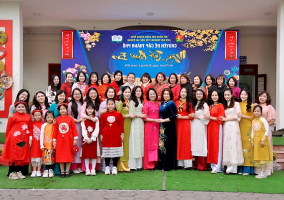 Đến với Chuyên đề Tết có: Đ/c: Nguyễn Chí Linh- Trưởng phòng Giáo dục và Đào tạo Quận, Đ/c: Trịnh Thị Mai Phương- Ủy viên quận ủy, Bí thư quận đoàn, Đ/c: Nguyễn Thị Hồng- Phó trưởng phòng Giáo dục và Đào tạo Quận, Đ/c: Bùi Thị Thanh Thảo- Phó bí thư quận đoàn, Đ/c: Nguyễn Văn Lực- Bí thư Đảng ủy, chủ tịch HĐND Quận, Cô: Trần Thị Vân Anh- Phó chủ tịch UBND phường, Cô Vũ Thị Kim Vân – BT chi bộ - Hiệu trưởng Nhà trường, Bác Đặng Kim Dũng- Trưởng ban đại diện CMHS nhà trường lên sân khấu bấm nút khai trương “Hội chợ xuân”