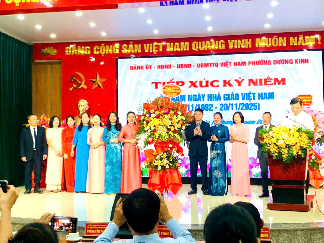 Hòa cùng không khí kỷ niệm 43 năm Ngày Nhà giáo Việt Nam, thầy và trò Trường Tiểu học Hải Thành đã mở màn chương trình văn nghệ tại Hội nghị kỷ niệm 43 năm Ngày Nhà giáo Việt Nam do UBND phường Dương Kinh tổ chức với tiết mục hát múa “Yêu người bao nhiêu, yêu nghề bấy nhiêu”.